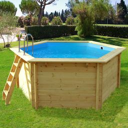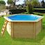 Kit piscine bois du Nord hors sol ronde hexagonale - 4.10 x 1.18 m - Pin traité autoclave alte 4 - Liner 75/100 ème - Filtration 4 m3/h - Margelle en pin - Feutre de fond et de parois - 1 sac de sable - Production Européenne..