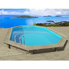 Kit piscine bois du Nord hors sol octogonale allongée - 7.57 x 4.07 x 1.44 m - Pin traité autoclave alte 4 FSC - Liner 75/100 ème - Filtration 8.3 m3/h - Margelle en pin - Feutre de fond et de parois - Production Européenne..
