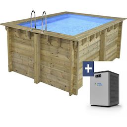 Kit piscine bois du Nord Carré - Hors sol - 3.20 x 3.20 x 1.24 m - Pin traité autoclave alte 4 - Liner 75/100 ème - Filtration à sable - Margelle en pin - Feutre de fond et de parois - Fabrication européenne + Pompe à chaleur 3.5 kw/h - Hayward - Micro - Noir.