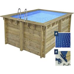 Kit piscine bois du Nord rectangle - Hors sol - 3.50 x 2.30 x 1.24 m - Pin traité autoclave alte 4 - Liner 75/100 ème - Filtration à cartouche - Margelle en pin - Feutre de fond et de parois - Bâche à bulles 180 µ - Bâche hiver 280 g/m² - Fabrication européenne.