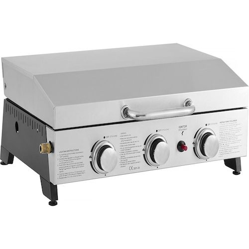 Plancha à gaz avec 3 bruleurs et couvercle en métal Fasto - 7,5 kw - Gris