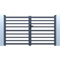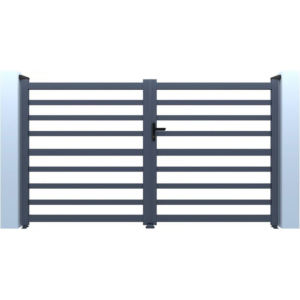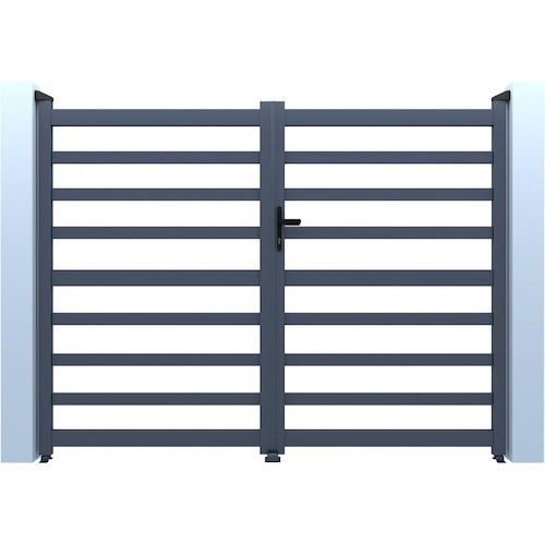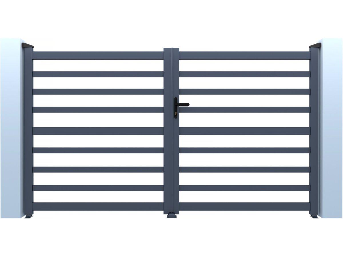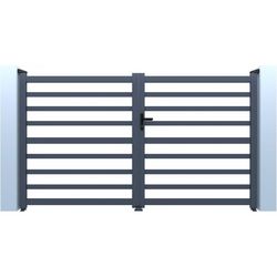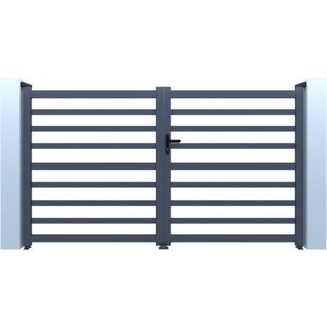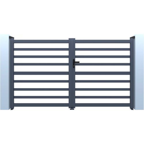 Portail de jardin ajouré Martin - Dimensions : 300 x 120 cm - Type d'ouverture : battant - Aluminium - Gris.