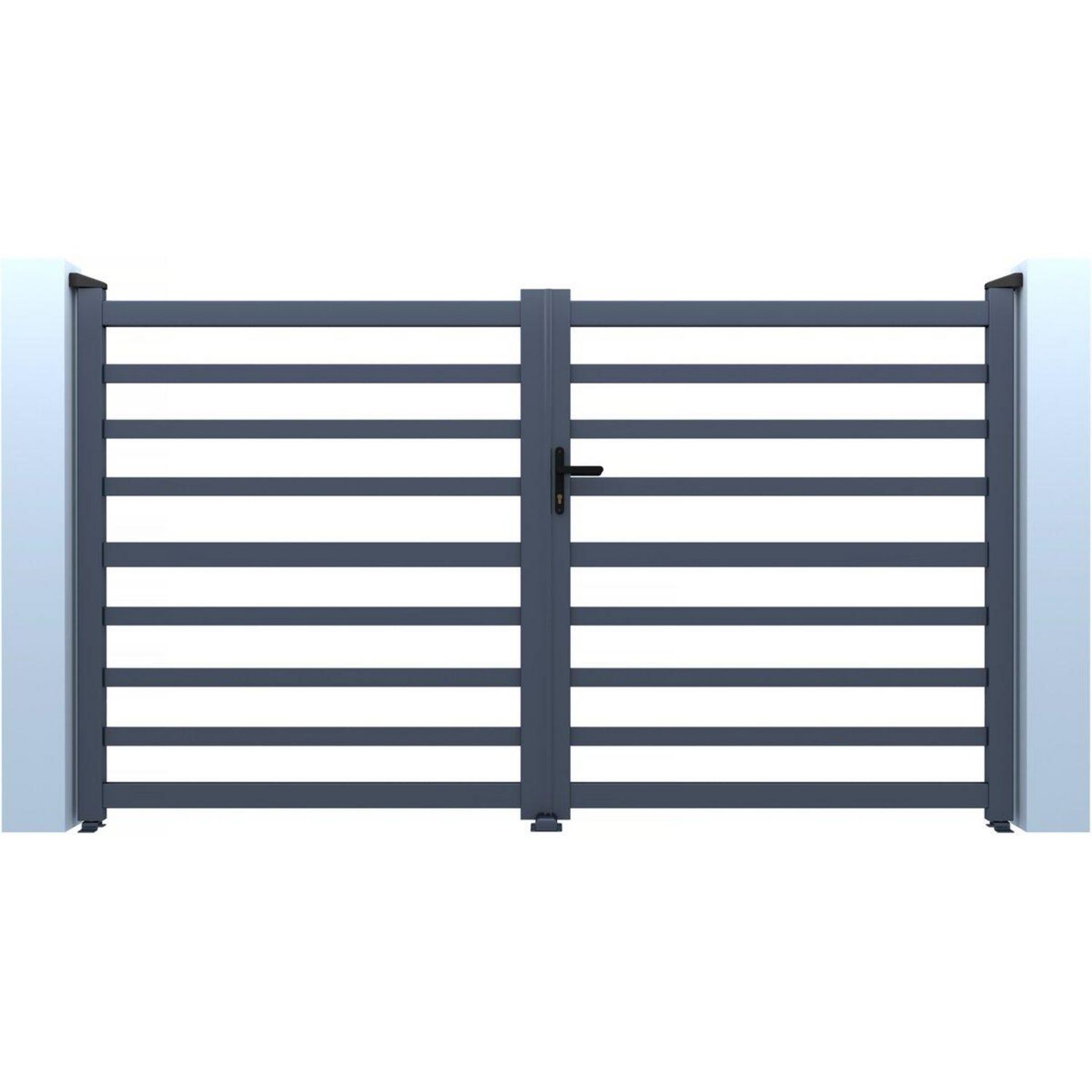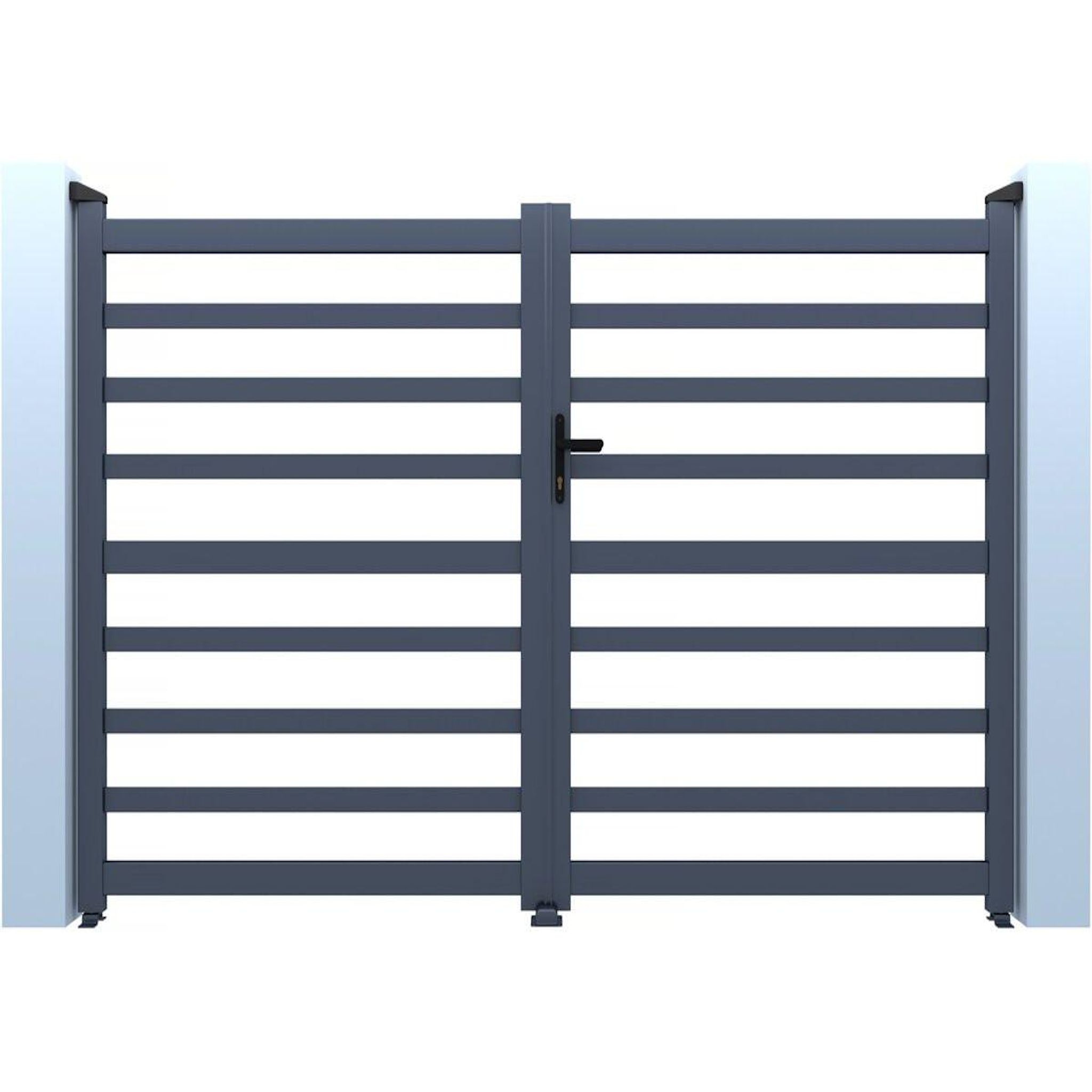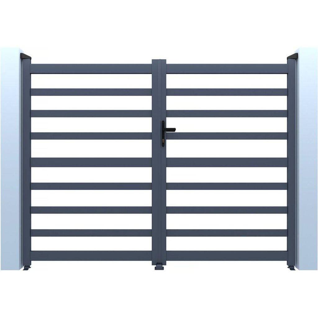 Portail de jardin ajouré Martin - Dimensions : 300 x 120 cm - Type d'ouverture : battant - Aluminium - Gris.