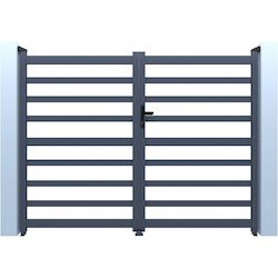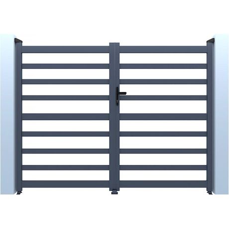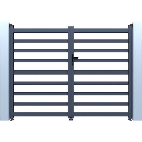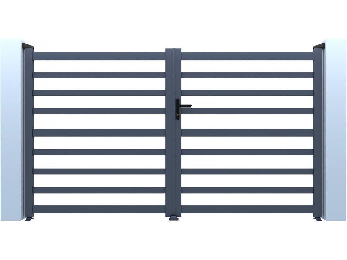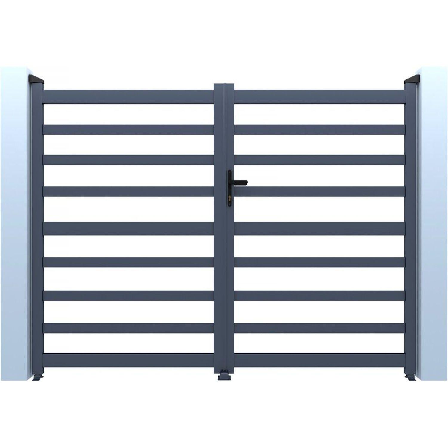 Portail de jardin ajouré Martin - Dimensions : 300 x 140 cm - Type d'ouverture : battant - Aluminium - Gris.