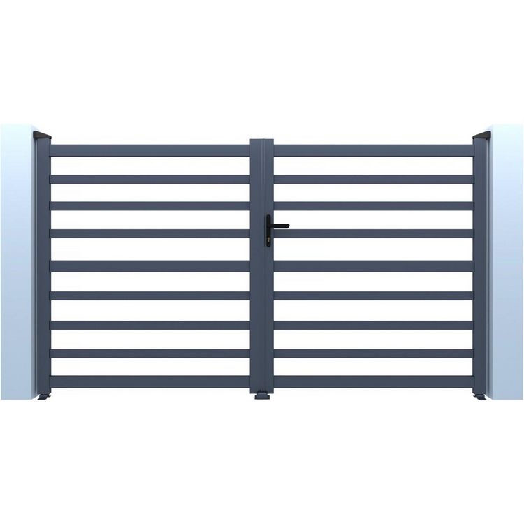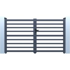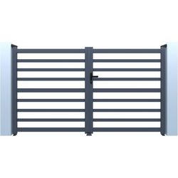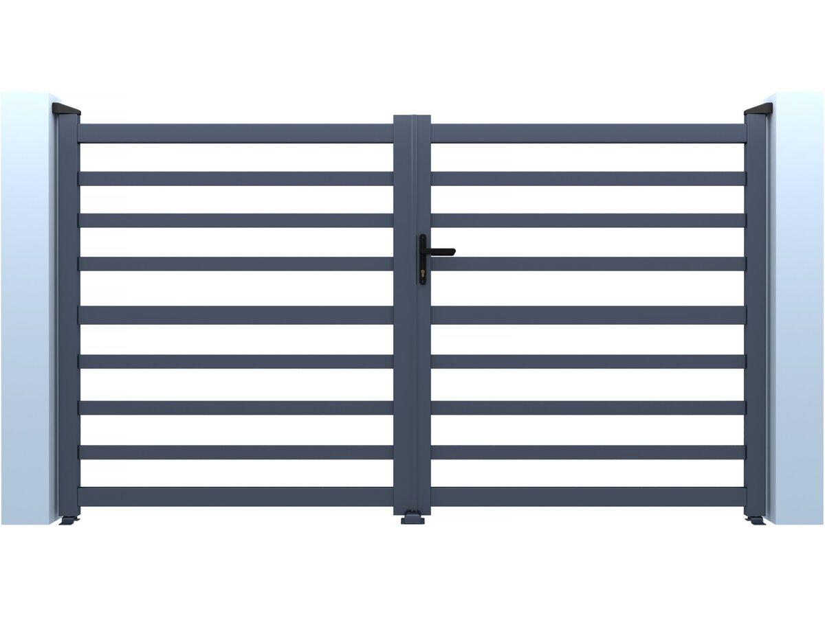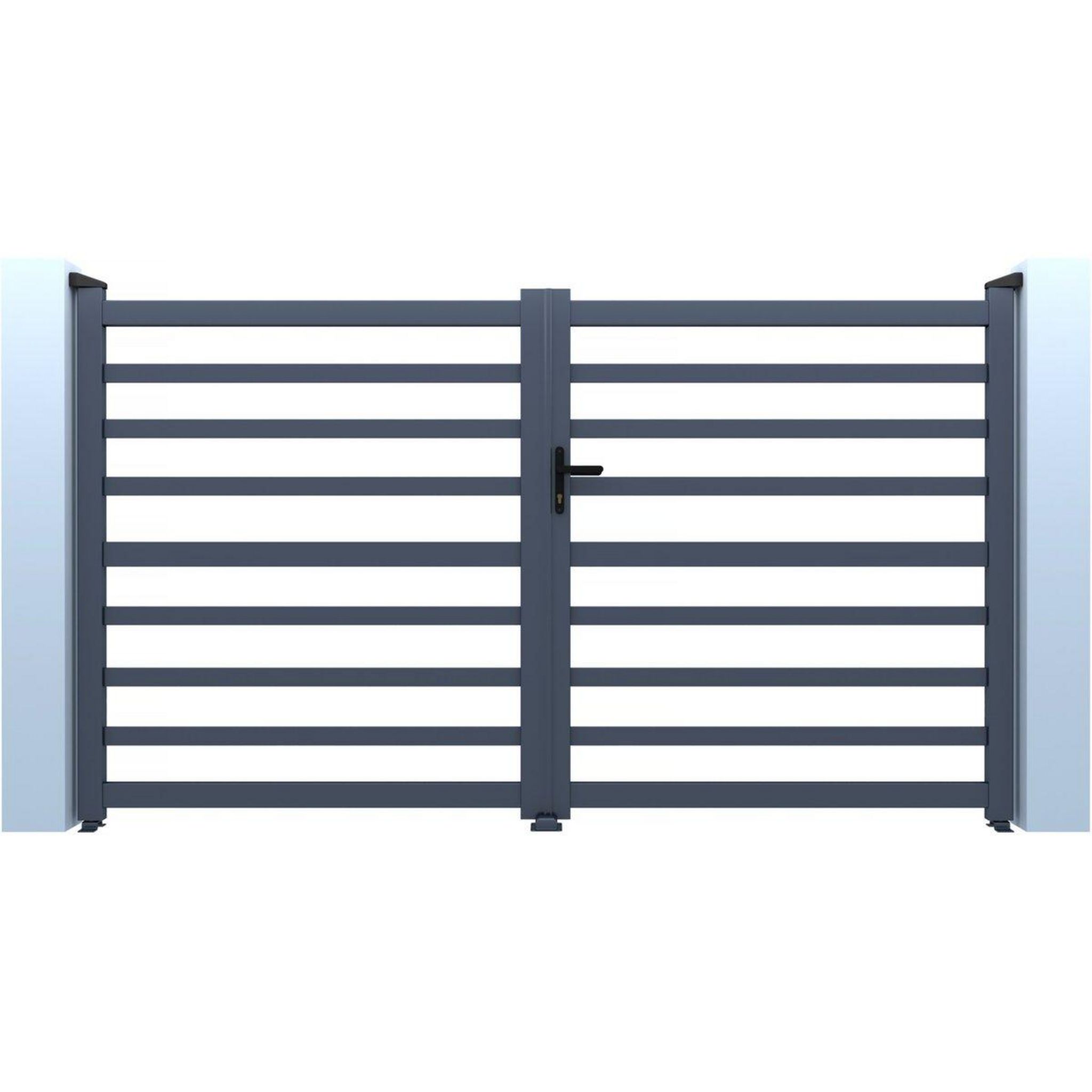 Portail de jardin ajouré Martin - Dimensions : 300 x 180 cm - Type d'ouverture : battant - Aluminium - Gris.