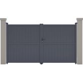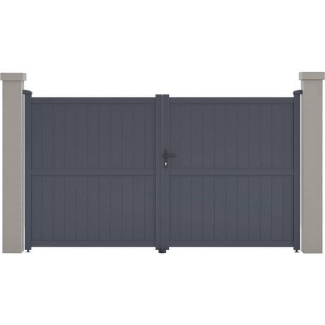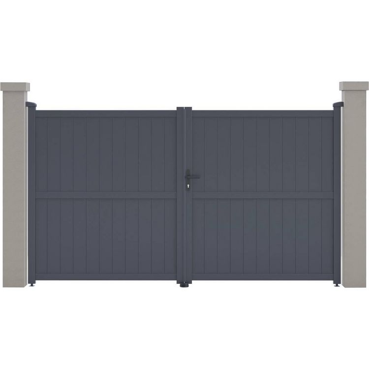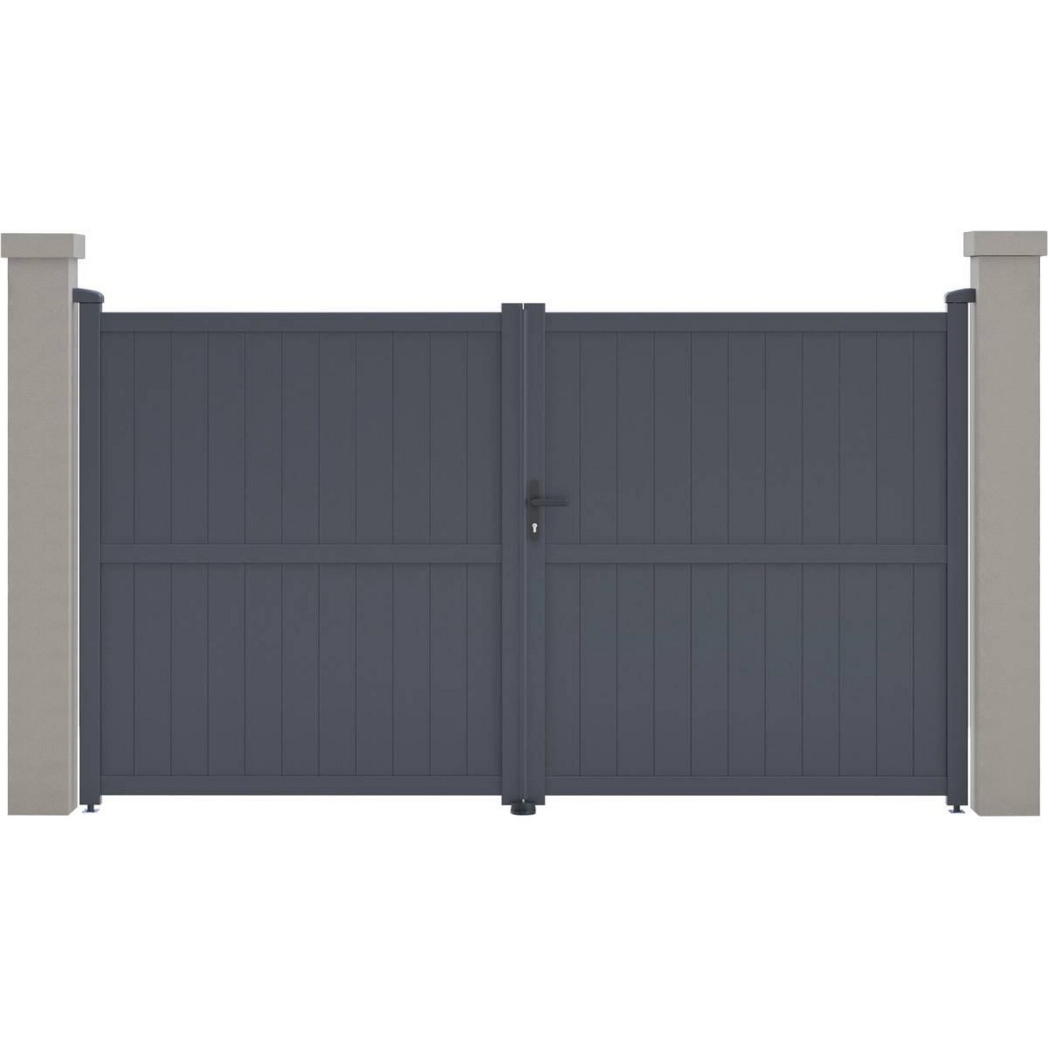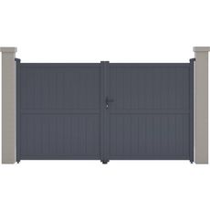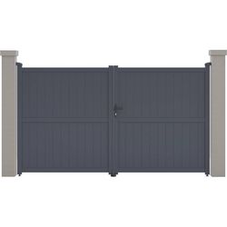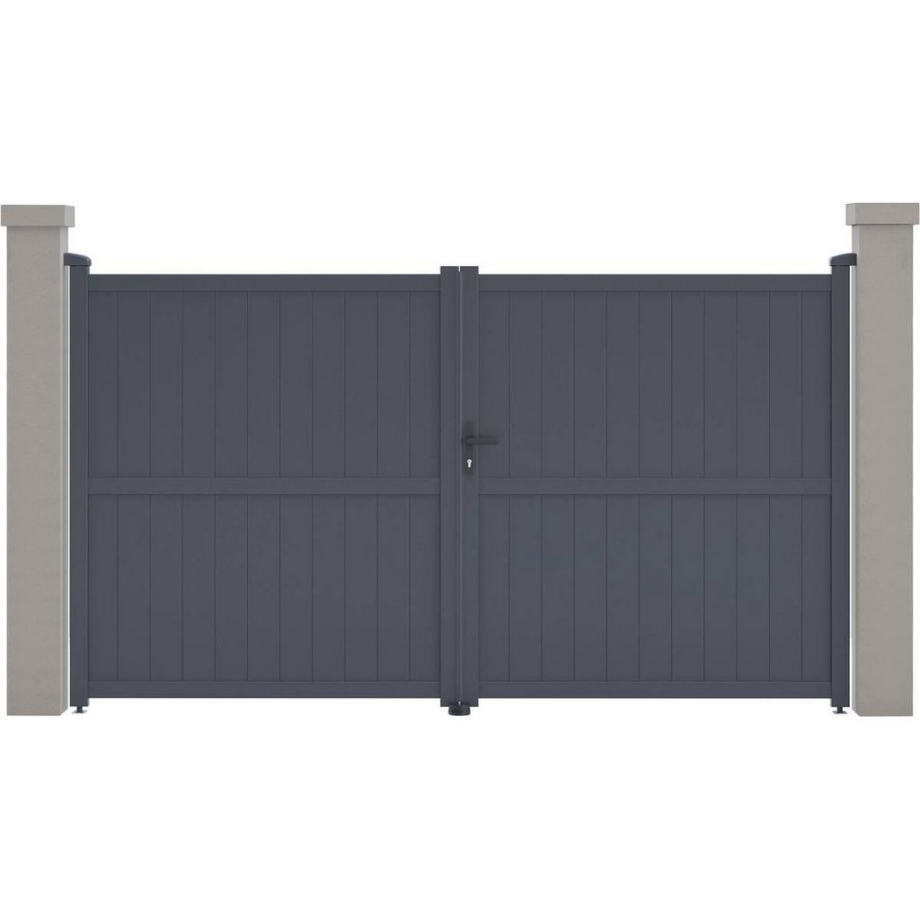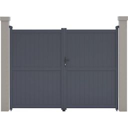 Portail aluminium Maurice - Dimensions : 299.5 x 155.9 cm - Gris - Structure : aluminium - 2 portes avec serrure et poignée - Ancrages intérieurs et extérieurs - Anti-UV - Anti-rouille - Livré en kit - Piliers non inclus..