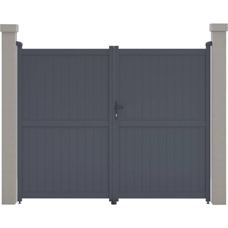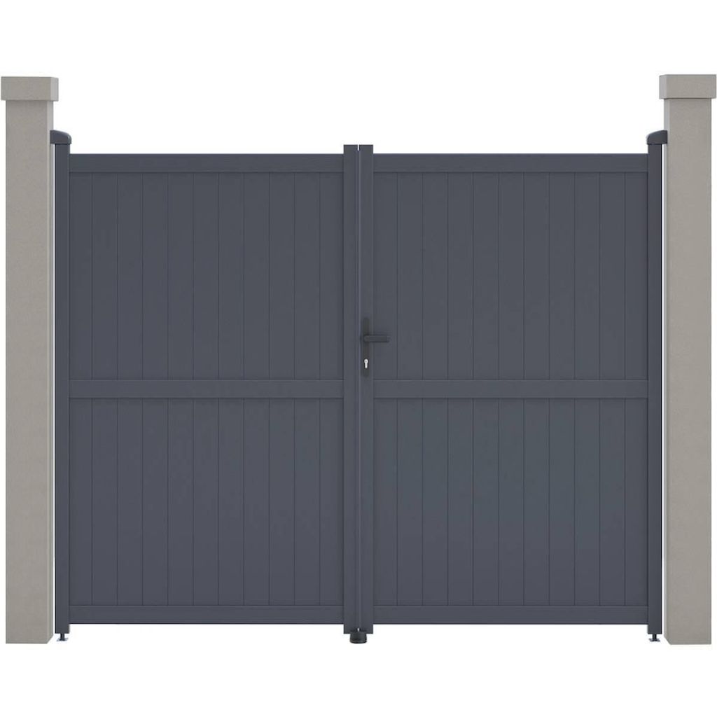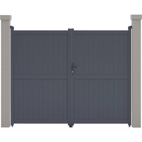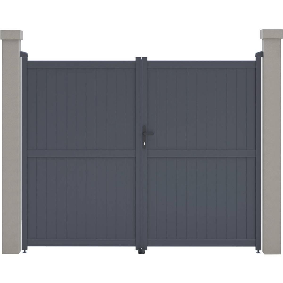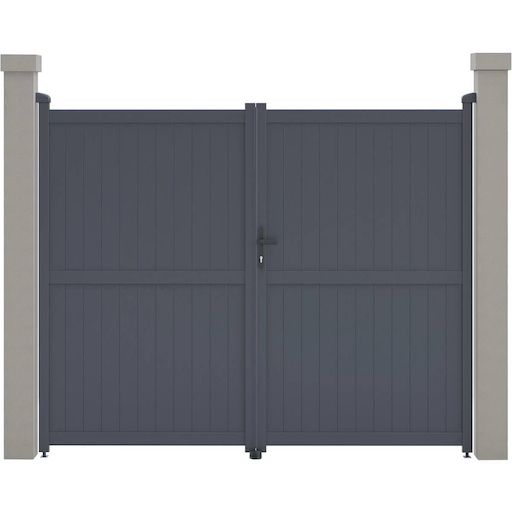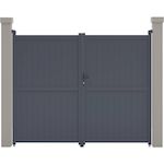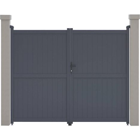 Portail aluminium Maurice Nous vous proposons le portail en aluminium Maurice . Il viendra apporter modernité et sécurité à votre entrée, il protègera votre habitation d'une manière optimale. Il est particulièrement résistants aux intempéries et nécessite peu d'entretien au quotidien.De plus il offre une parfaite tenue dans le temps, grâce à sa structure en aluminium et a une bonne résistance aux UV et a un traitement antirouille.Son design plein vous protègera du voisinage et des passants et préservera votre intimité des regards extérieurs. Portail aluminium Maurice - Dimensions : 299.5 x 180.9 cm - Gris - Structure : aluminium - 2 portes avec serrure et poignée - Ancrages intérieurs et extérieurs - Anti-UV - Anti-rouille - Livré en kit - Piliers non inclus. .Descriptif: Portail aluminium Maurice Vendu en kit Piliers non inclus