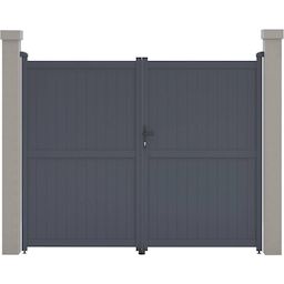 Portail aluminium Maurice - Dimensions : 299.5 x 180.9 cm - Gris - Structure : aluminium - 2 portes avec serrure et poignée - Ancrages intérieurs et extérieurs - Anti-UV - Anti-rouille - Livré en kit - Piliers non inclus..
