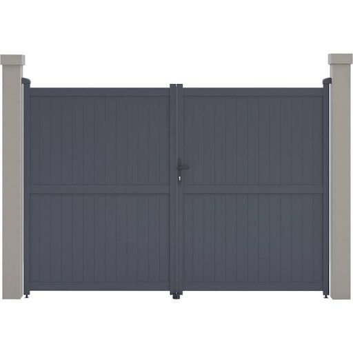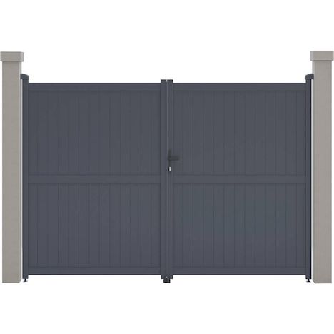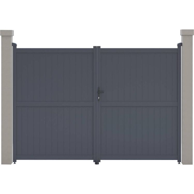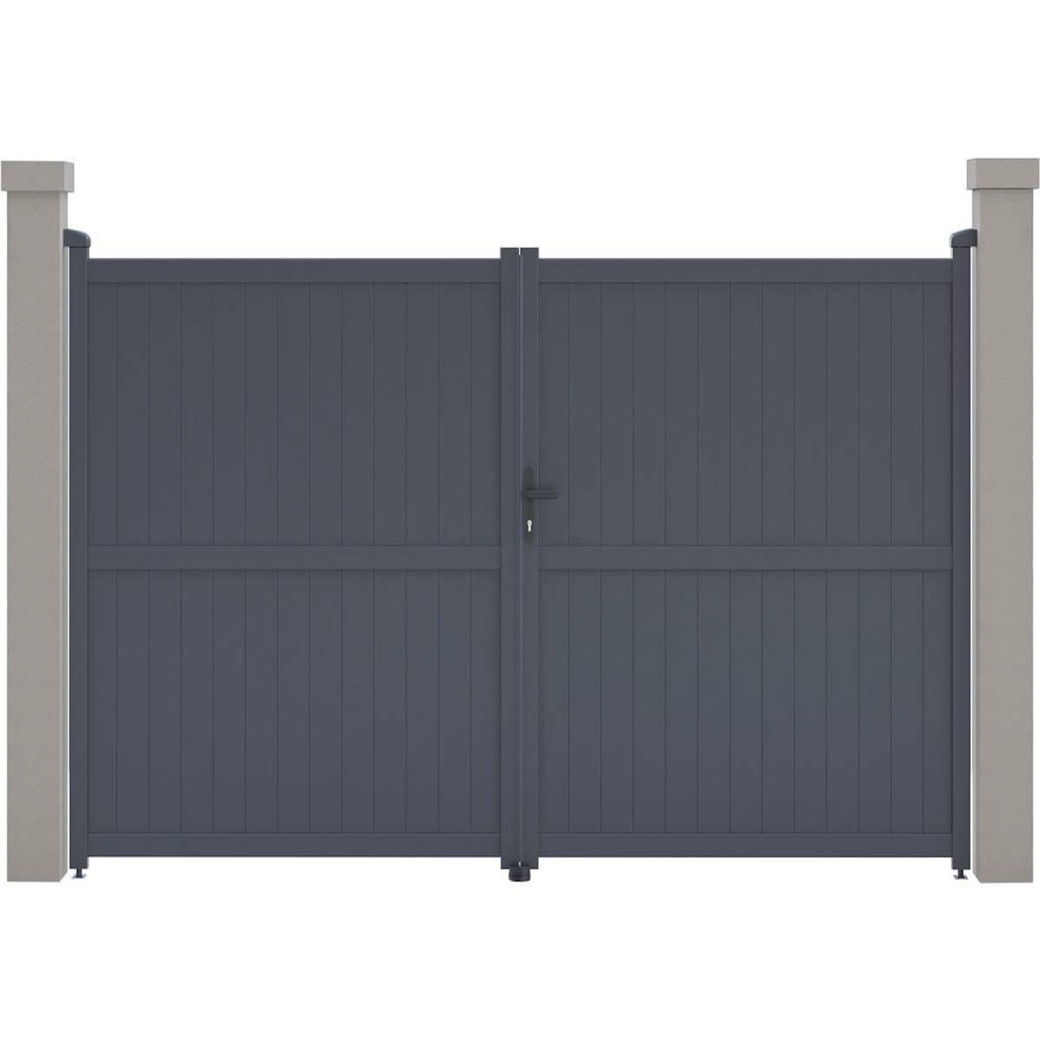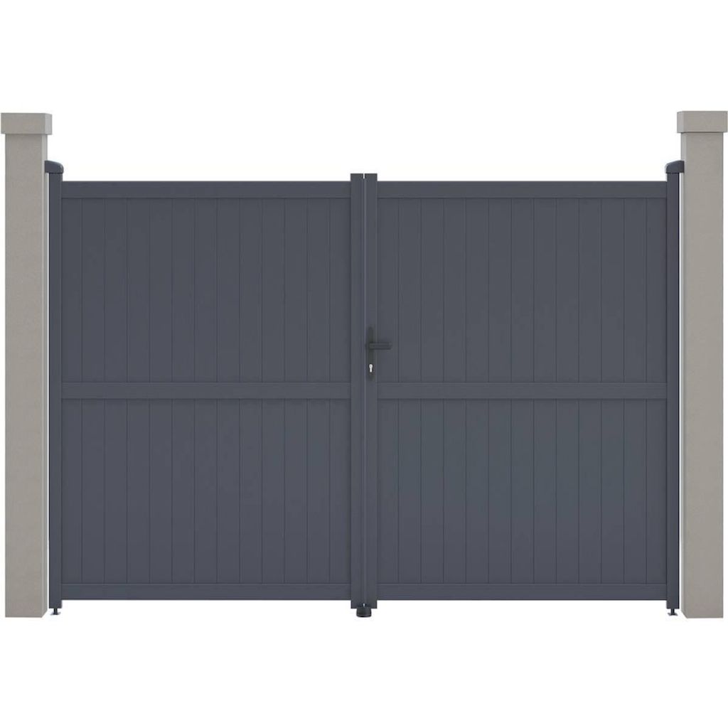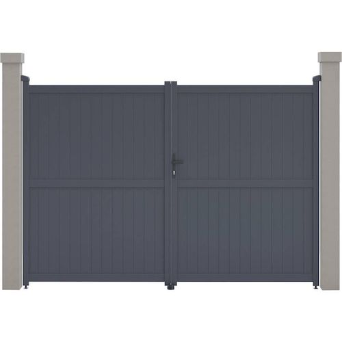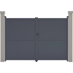 Portail aluminium Maurice Nous vous proposons le portail en aluminium Maurice . Il viendra apporter modernité et sécurité à votre entrée, il protègera votre habitation d'une manière optimale.Il est particulièrement résistants aux intempéries et nécessite peu d'entretien au quotidien.De plus il offre une parfaite tenue dans le temps, grâce à sa structure en aluminium et a une bonne résistance aux UV et a un traitement antirouille.Son design plein vous protègera du voisinage et des passants et préservera votre intimité des regards extérieurs. Portail aluminium Maurcie - Dimensions : 349.5 x 180.9 cm - Gris- Structure : aluminium - 2 portes avec serrure et poignée - Ancrages intérieurs et extérieurs - Anti-UV - Anti-rouille - Livré en kit - Piliers non inclus. .Descriptif: Portail aluminium Maurice Vendu en kit Piliers non inclus