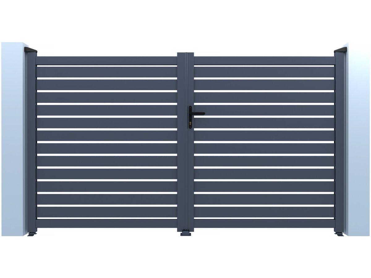 Portail ajouré Julien - Dimensions : 300 x 180 cm - Type d'ouverture : battant - Aluminium - Gris.