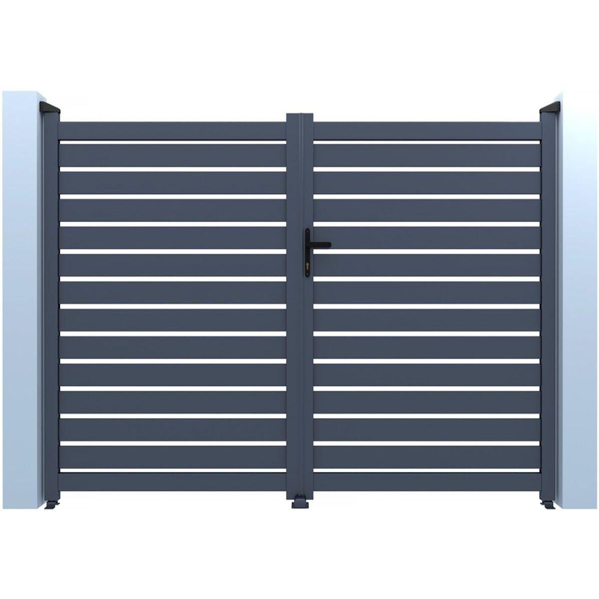 Portail ajouré Julien - Dimensions : 340 x 180 cm - Type d'ouverture : battant - Aluminium - Gris.
