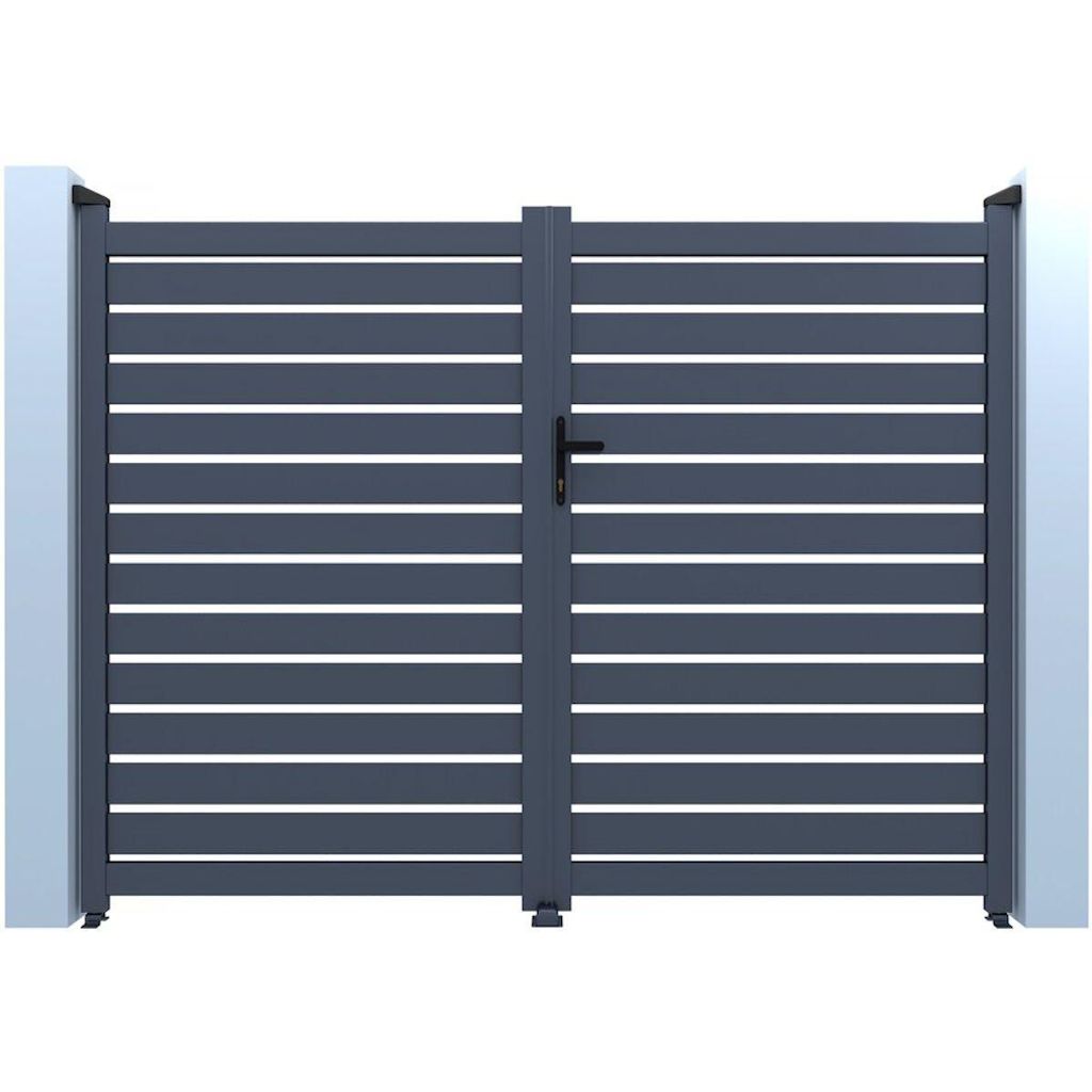 Portail semi-ajouré en aluminium Julien - 340 x 140 cm - Gris