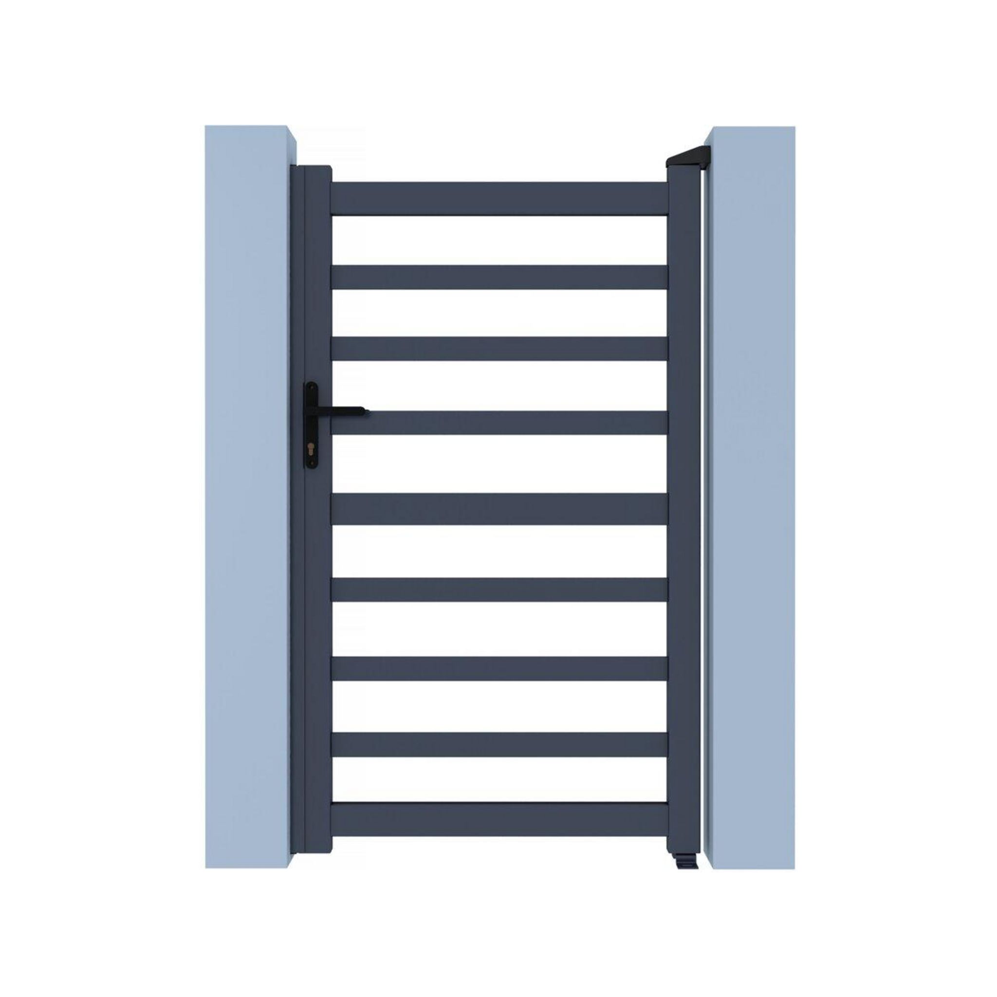 Descriptif : Portillon ajouré Marius - Dimensions : 100 x 120 cm - Type d'ouverture : battant - Aluminium - Gris.