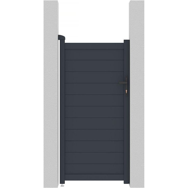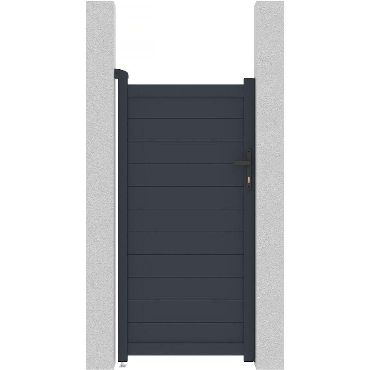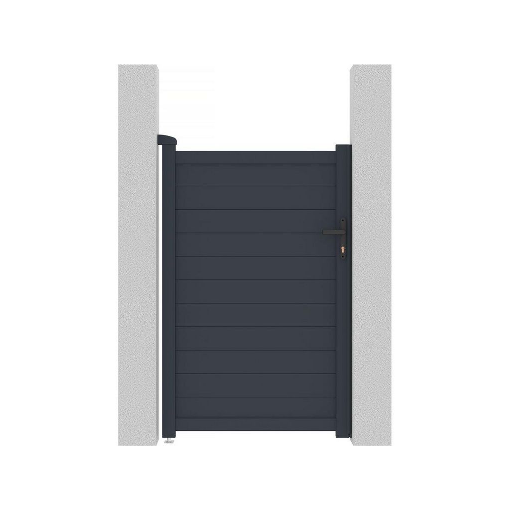 Portillon aluminium Marc - Dimensions : 101.2 x 155.9 cm - Gris - Structure : aluminium - 1 porte avec serrure et poignée - Poussant droit - Ancrages intérieurs et extérieurs - Anti-UV - Anti-rouille - Livré en kit.
