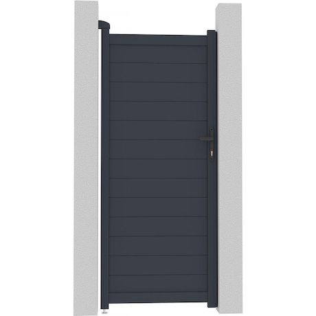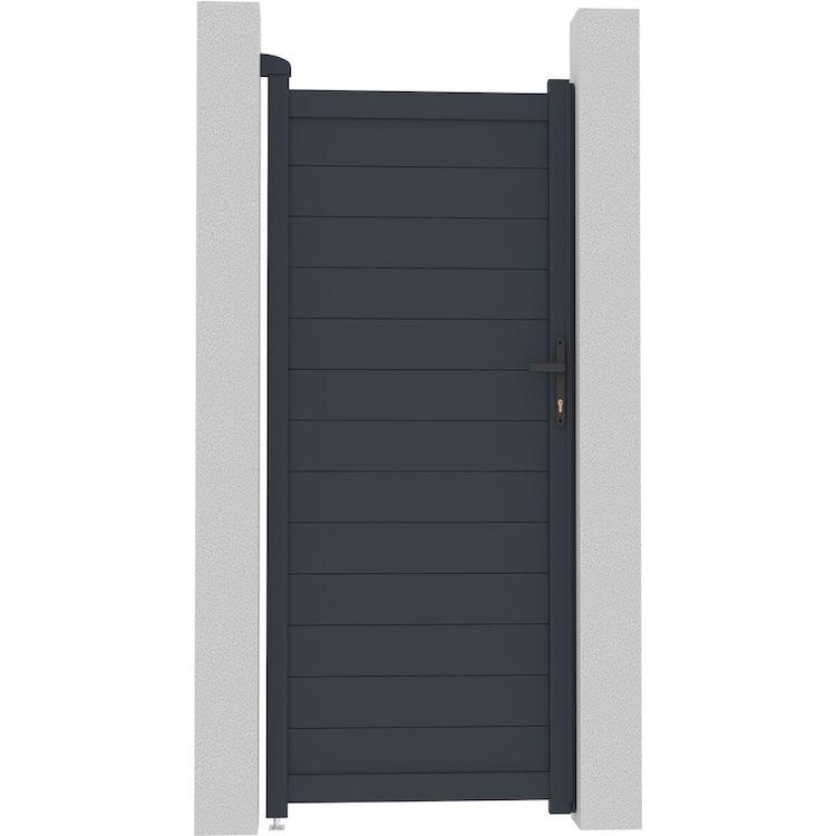 Portillon aluminium Marc - Dimensions : 101.2 x 180.9 cm - Gris - Structure : aluminium - 1 porte avec serrure et poignée - Poussant droit - Ancrages intérieurs et extérieurs - Anti-UV - Anti-rouille - Livré en kit.