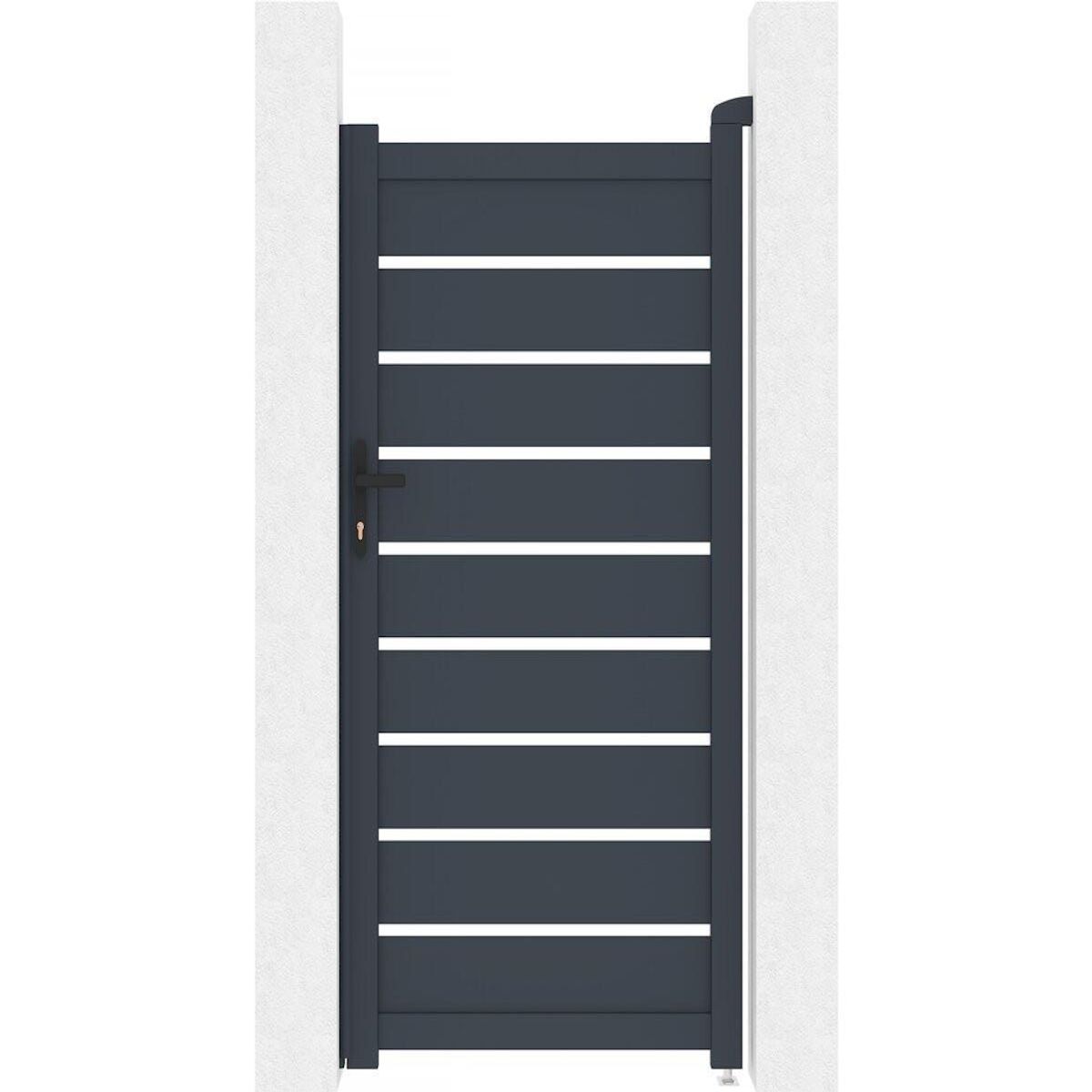 Portillon en aluminium Bastien - 100 x 176 cm -Anthracite RAL 7016 - Portail battant droit semi-ajouré - Piliers non inclus - Ancrage extérieur et intérieur fournis.