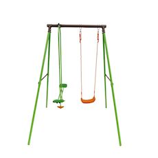 Le portique à balançoires parfait Le jeu des enfantsSpécialement créé pour les enfants, ce portique aux couleurs acidulées leur apportera de longues journées de fun pour des souvenirs mémorables !La balançoire, seule ou à plusieursLe portique Lola dispose d'une balançoire sur laquelle vos enfants se balancer. Son assise leur offre un confort agréable ainsi qu'une certaine stabilité. Ce portique dispose également d'un agrès face-à-face. Tout l'avantage d'un tel agrès est qu'il permet aux enfants de se balancer à deux. Assis l'un en face de l'autre et les pieds fermement déposés sur le repose-pied, vos enfants se balanceront et s'entraîneront dans un mouvement qui les amusera sans le moindre doute. Enfin, conçu principalement en acier, le portique Lola est fait pour durée. Solide, stable et résistant, vos enfants pourront en profiter très longtemps.Portique en acier Lola - 2 agrès - 1 balançoire - 1 face à face - 206 x 156 x 196 cm - Coloris : vert, chocolat et orange .Matériaux: Acier - PE - PP