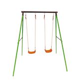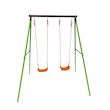 Portique en acier Polo - 2 agrès - 2 balançoires- 227 x 156 x 196 cm - Coloris : vert, chocolat et orange.