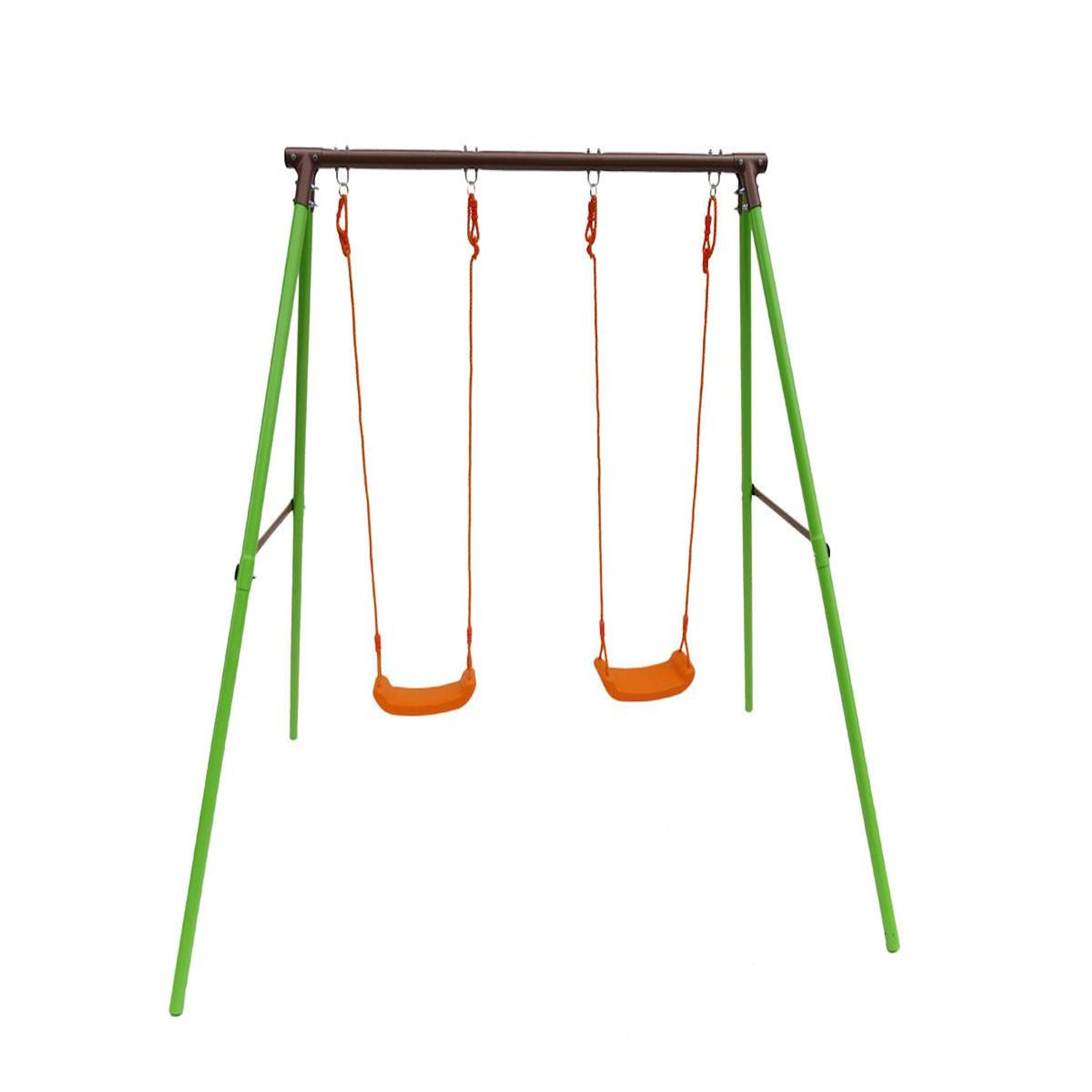 Le portique en acier pour enfants !Vos enfants vont adorer s'amuser avec le portique Polo ! Du sport tout en s'amusantCette aire de jeu est parfaite pour les jeunes enfants et leur propose 2 balançoires aux couleurs acidulés ! Seuls ou accompagnés de leurs camarades, ils auront tout le loisir de se balancer des heures durant. Non seulement vos enfants profitent de l'air frais pour s'amuser et se distraire mais ils pratiquent également une activité sportive.En effet, utiliser la balançoire amènera votre enfant à faire appel à différents muscles de son corps, à son sens de l'équilibre et à faire preuve d'adresse.Une excellente alternative aux jeux vidéos et à la TV !Portique en acier Polo - 2 agrès - 2 balançoires- 227 x 156 x 196 cm - Coloris : vert, chocolat et orange .Matériaux: Acier et PE