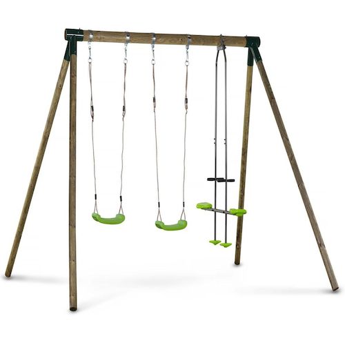 Portique bois Lana - Avec 2 balançoires et 1 vis-à-vis - certifié 100% FSC traité autoclave alte 3 - 240 x 315 x 230 cm..