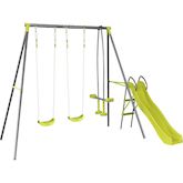 Portique en métal avec toboggan Enzo II - 4 agrès - Vert