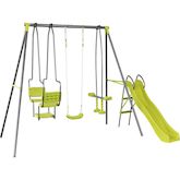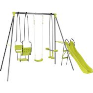Portique en métal avec toboggan Ludo II avec 4 agrès - Vert