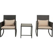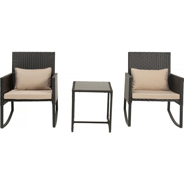 Salon bas de jardin avec fauteuils à bascules en résine tressée - coloris noir - style bistrot - 2 fauteuil - 1 table basse - antirouille - Anti UV.