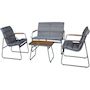 Salon de jardin en métal Bastia - 4 places - GrisOffrez une nouvelle dimension à votre extérieur avec le salon de jardin Bastia , un ensemble 4 places qui marie avec élégance confort et style contemporain. Cet ensemble complet se compose d'un canapé, de 2 fauteuils et d'une table basse, parfaits pour transformer votre terrasse ou balcon en un véritable espace de détente.Avec ses dimensions optimisées, 115 x 74 x 75 cm pour le canapé, 61 x 74 x 75 cm pour les fauteuils et 75 x 44 x 41 cm pour la table basse, le modèle Bastia s'adapte à tous les espaces sans compromis sur la convivialité. Sa structure en métal robuste assure une longévité exceptionnelle, tandis que ses coussins en polyester 180g gris vous enveloppent dans un confort moelleux pour vos moments de détente. Le design est sublimé par des finitions effet bois sur les accoudoirs et le plateau de table, apportant une touche chaleureuse et naturelle à votre extérieur.Faites du salon de jardin Bastia l'atout charme de vos moments de partage et profitez sereinement de chaque instant en plein air. Salon de jardin matelassé en métal Bastia - 4 places - Dimensions canapé : 115 x 74 x 75 cm - Dimensions chaises : 61 x 74 x 75 cm - Dimensions table : 75 x 44 x 41 cm - Coussins en polyester 180g - Gris .Descriptif: Salon de jardin matelassé en métal Bastia - 4 places - Dimensions canapé : 115 x 74 x 75 cm - Dimensions chaises : 61 x 74 x 75 cm - Dimensions table : 75 x 44 x 41 cm - Coussins en polyester 180g - Gris
