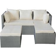 Salon de jardin bas en résine tressée Diya 3 places - Gris et beige