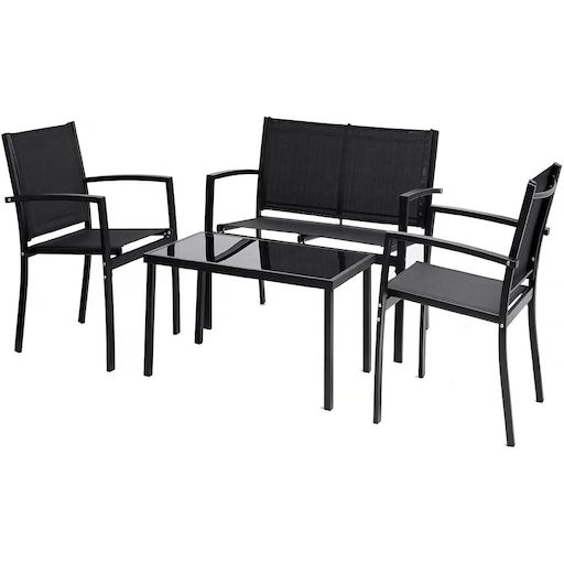 Salon de jardin bas Lino - 4 places - GrisLe salon de jardin Lino en textilène est l'ensemble parfait pour votre espace extérieur. Avec ses quatre places, il offre amplement d'espace pour vous et vos invités pour se détendre en plein air.Fabriqué à partir de matériaux de haute qualité, ce salon de jardin est à la fois durable et résistant aux intempéries. Le textilène utilisé pour les sièges et les dossiers est confortable et facile à nettoyer, offrant une expérience de détente confortable à chaque utilisation.Le design élégant et contemporain de ce salon de jardin est complété par une finition noire sophistiquée, qui s'harmonisera parfaitement avec tous les types de décoration de jardin.Le salon de jardin Lino est facile à assembler et comprend tous les éléments nécessaires pour une installation rapide et facile. Profitez de votre jardin ou de votre terrasse avec style grâce à cet ensemble de salon de jardin. Salon de jardin bas Lino - 4 places - métal et textilène - Gris - Table finition en verre noir - Fauteuil 2 places - 2 chaises .Descriptif: Salon de jardin bas Lino - 60 x 59 x 77,5 cm - Métal et textilène - Noir - Table finition en verre noir - Fauteuil 2 places - 2 chaises