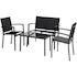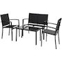 Salon de jardin bas Lino - 4 places - métal et textilène - Gris - Table finition en verre noir - Fauteuil 2 places - 2 chaises.