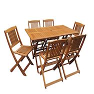 Salon de jardin bois exotique Hongkong - Table pliante + 6 chaises pliantes