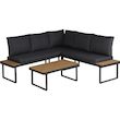 Salon de jardin canapé d'angle décor imitation bois Fiora - 5 places - Gris