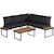 Salon de jardin modulable Fiora - 5 places - Dimensions : canapé x2 : 154 x 69 x 66 cm - Dimensions canapé angle : 70 x 70 x 64 cm - Dimensions table : 110 x 60 x 34 cm - Plateau table aspect bois - Structure en métal - Coussin en tissu de 8 cm - Gris.