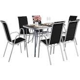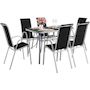 Salon de jardin Cordoba + Phoenix 6 places - Table acier / plateau verre 180 x 90 x 72 cm - 6 fauteuils aluminium / textilène noir..