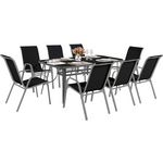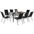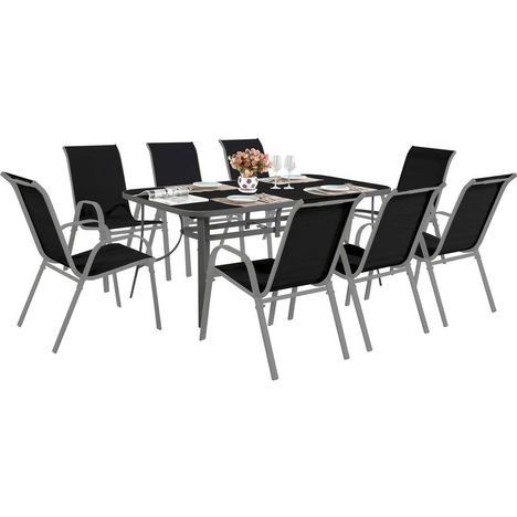 Salon de jardin Cordoba + Phoenix 8 places - Table acier / plateau verre 180 x 90 x 72 cm - 8 fauteuils aluminium / textilène noir..