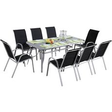En savoir +Salon de jardin en textilène Cordoba - 1 table + 8 fauteuils - 180 x 90 x 72 cm - Couleur : Noir.