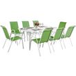 Salon de jardin en textilène Cordoba - 1 table + 8 fauteuils - 180 x 90 x 72 cm - Couleur: Vert/Blanc. : Salon repas de jardin, structure en acier et assise en textilène - Idéal pour recevoir vos proches et vos amis autour d'un repas. Ce salon se veut moderne, fonctionnel mais surtout convivial. L