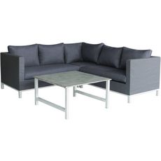 Comment entretenir son salon de jardin ? Parce que la structure du salon Turin est en aluminium, son entretien est simple et rapide. Pour nettoyer ce salon de jardin, vous aurez uniquement besoin d'eau savonneuse et d'un chiffon ou d'une éponge propre. Préférez les produits sans solvants ou encore les chiffons (ou éponges) non abrasifs pour ne déteriorer ni rayer la structure du salon. Même s'il est résistant à la rouille, n'hésitez pas à ranger votre salon sous une housse de protection et à l'entreposer à l'abri en cas d'intempéries.Descriptif : - Salon de jardin - Un canapé d'angle et sa table basse carré - Grande capacité d'accueil - 219 x 83/219 x 70 cm - Élément d'angle : 83 x 83 x 70 cm - Élément assise 2 place : 136 x 83 x 70 cm - Structure en aluminium - Assise et coussins en polyester - Coussins déhoussables et lavables.