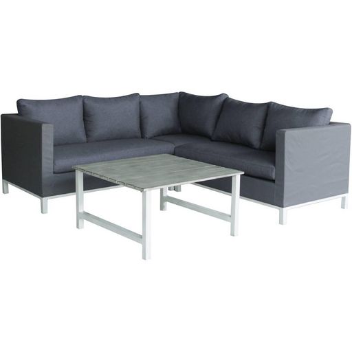 Salon de jardin - Canapé d'angle - Table basse - Structure en aluminium - Coussins assises/dossier en polyester - Déhoussables et Lavables - Résiste à la rouille - 219 x 83/219 x 70 cm - Gris.Donnez le ton Point de mire de votre jardin, le canapé d'angle Turin sera au centre de toutes les attentions