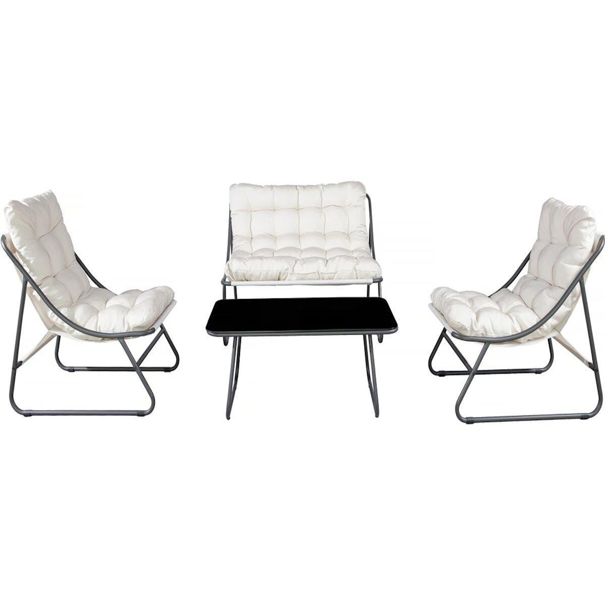 Salon de jardin en métal avec coussins Aria - 4 places - Beige