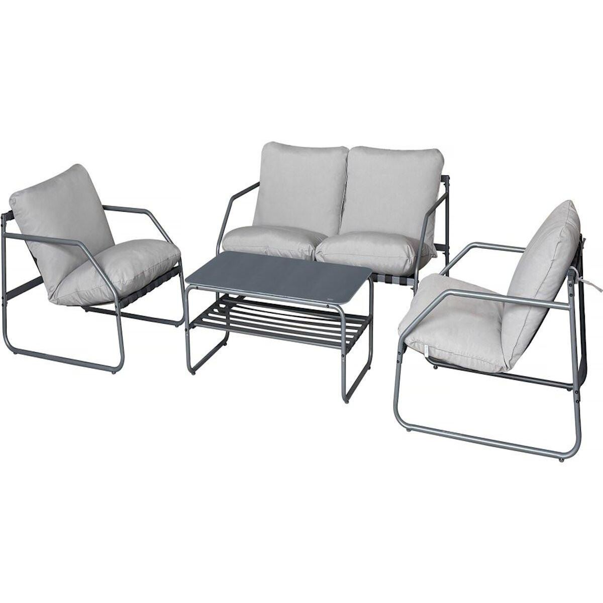 Salon de jardin en métal avec coussins Sora - 4 places - Gris