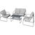 Salon de jardin 4 places design en métal avec coussins Sora - Dimensions canapé 2 places : 128 x 82 x 62 cm - Dimensions fauteuil simple : 66 x 82 x 62 cm - Dimensions table basse : 90 x 50 x 40 cm - Gris.