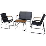 Salon de jardin imitation bois en métal Sparta - 4 places - Dimensions canapé : 115 x 74 x 75 cm - Dimensions chaises : 61 x 74 x 75 cm - Dimensions table : 75 x 44 x 41 cm - Métal - Assise en textilène - Noir.Salon de jardin en métal Sparta - 4 places - NoirRedéfinissez votre espace extérieur a