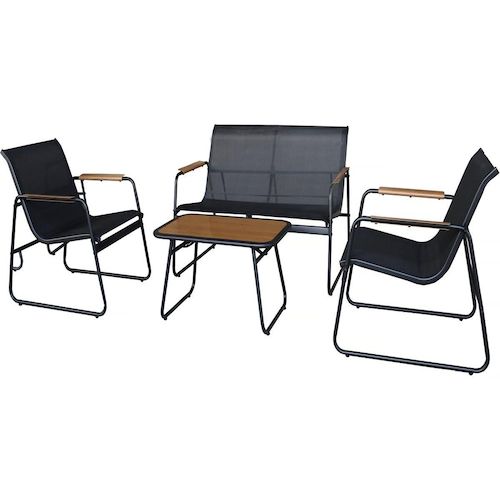 Salon de jardin en métal avec décor imitation bois Sparta - 4 places - Noir