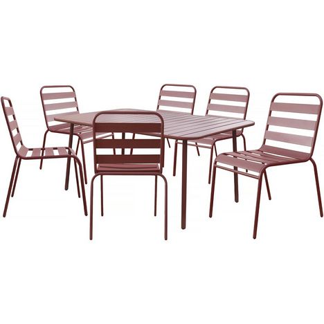 Ensemble table de jardin Bilbao - 6 places - Dimensions de la table : 150 x 90 x 71 cm - 6 chaises empilables - Dimensions des chaises : 59 x 55 x 84 cm - Métal - Terracotta.