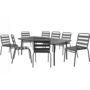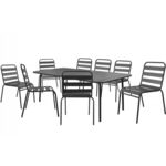 Ensemble table de jardin Bilbao - 8 places - Dimensions de la table : 180 x 90 x 71 cm - 8 chaises empilables - Dimensions des chaises : 59 x 55 x 84 cm - Métal - Gris.