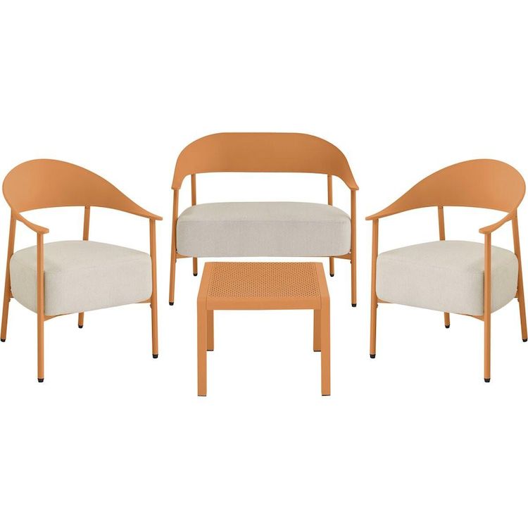 Salon de jardin en métal et plastique Céora - 4 places - Orange