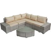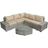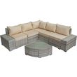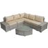 Canapé d'angle de jardin Milo - 5 places - Dimensions canapé : 238/238 x 79 x 71 cm - Dimensions table : 70 x 70 x 35 cm - Résine tressée - Gris.