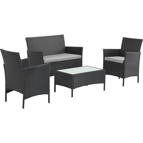 En savoir +Salon de jardin en résine tressée - 1 Canapé de jardin + 2 fauteuils de jardin + 1 table basse avec plateau en verre - Structure en acier - Coussins en polyester déhoussables.